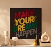 Diese kühne und farbenfrohe Typografie erinnert Sie daran, Ihre Träume zu verfolgen und sie in die Tat umzusetzen. Das energiegeladene Design und die leuchtenden Farben fangen die Begeisterung und Entschlossenheit ein, die man braucht, um seine Ziele zu erreichen. Hängen Sie es in Ihrem Schlafzimmer, Büro oder überall dort auf, wo Sie eine Dosis Motivation brauchen.