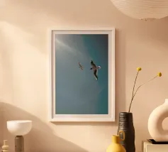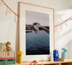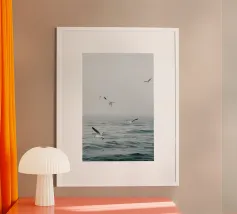 Dieser hochwertige Kunstdruck mit dem Motiv "SoloMöwe - Dänemark" zeigt eine elegante Möwe in minimalistischer Optik. Gedruckt auf langlebigem, matt beschichtetem Papier und eingerahmt in einen natürlichen Holzrahmen, fügt sich das Wandbild harmonisch in moderne Wohn- und Büroräume ein. Ideal für Liebhaber maritimer Motive und skandinavischem Design, perfekt als stilvolle Wanddekoration oder Geschenk zur Wohnungs- oder Büroeinweihung.