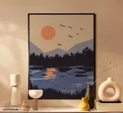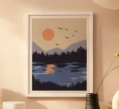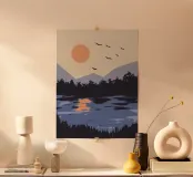 Bringen Sie mit unserem minimalistischen Poster "Sunset River" eine beruhigende Atmosphäre in Ihr Zuhause. Ideal als Wanddekoration für das Wohnzimmer oder als stilvolles Geschenk für Naturfreunde.