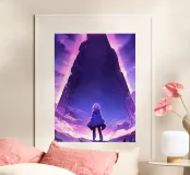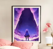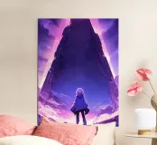 Ein Mädchen, das vor einem antiken Denkmal steht Lofi Art Poster mit Aluminium Rahmen