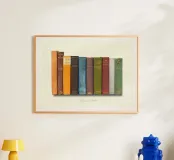 Eine großartige Geschenkidee für jeden Buchliebhaber. Die gesammelten Werke von Virginia Woolf, dargestellt anhand ihrer Erstausgabe-Rücken Der resultierende Druck ist eine geometrische Mischung aus Bild und Schrift und sieht auf einer Vielzahl von Produkten großartig aus