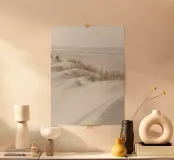 Dieses sanfte Motiv zeigt die natürliche Schönheit der Dünen an einem ruhigen Strand, in sanften Beige- und Grautönen gehalten. Das minimalistische Design und die weichen Konturen der Dünen schaffen eine beruhigende Atmosphäre, die die Gelassenheit der Küste perfekt einfängt. Ideal für Wandbilder, Kissen, Tassen und mehr, bringt dieses Motiv die friedliche Stimmung eines Strandspaziergangs in dein Zuhause. Für alle, die sich ein Stück Küstenruhe in ihren Raum holen möchten und die schlichte Eleganz der Natur schätzen.
