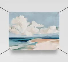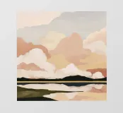 Eine abstrakte Landschaft aus weichen Wolken und sanftem Licht mit einer ruhigen, ausgewogenen Atmosphäre.