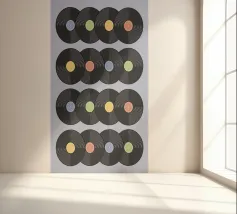 Dieses Kunstwerk kombiniert Kunst und Musik, indem es alte Schallplatten verwendet, um eine eindrucksvolle Komposition zu schaffen. Die Künstlerin (kathrinmay) hat die Schallplatten sorgfältig angeordnet, um eine dynamische Oberfläche zu schaffen, die Nostalgie hervorruft. Perfekt für Musikliebhaber, Vintage-Enthusiasten und alle, die ein einzigartiges Kunstwerk für ihr Zuhause oder Büro suchen.
