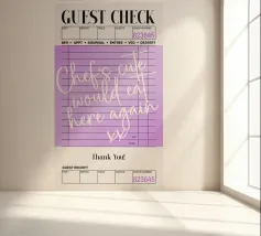 Guest Check Poster, Lila Flieder Wandkunst, Preppy Wandkunst