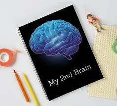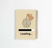 Dargestellt ist ein Gehirn, das mit Kaffee aus einer Kanne gefüllt wird, begleitet von einem Ladebalken darunter. Die Illustration deutet auf humorvolle Weise an, dass das Gehirn Kaffee braucht, um richtig zu funktionieren.