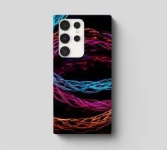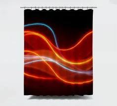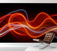 Abstraktes Design mit fließenden Lichtmustern in leuchtenden Rot- und Blautönen vor einem dunklen Hintergrund, ideal für die Verwendung als Hintergrundbild oder Desktop-Hintergrund, der den visuellen Reiz erhöht.