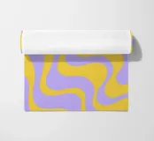 Retro-Muster, abstrakte Wellen, grooviges Design, gelb und lavendel, psychedelische Kunst, farbenfroher Hintergrund, Mitte des Jahrhunderts modern, flippige Tapete, lebendiges Dekor, trippiges Design, 70er Jahre Ästhetik, kühne abstrakte Formen