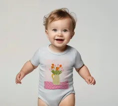 Alle unsere Kurzarm-Babystrampler sind farbecht und lassen sich bei 40 °C in der Maschine waschbar.