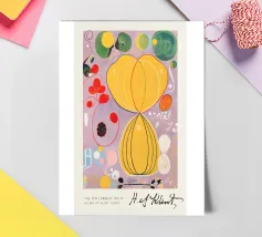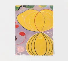Tauchen Sie ein in Hilma af Klints vielschichtigen "Baum der Erkenntnis Nr. 5". Dieses fesselnde abstrakte Werk, eine meisterhafte Mischung aus Aquarell und Graphit, stellt spirituelle und evolutionäre Konzepte durch ineinander verwobene organische und geometrische Formen dar. Klints Vorreiterrolle in der abstrakten Kunst zeigt sich in der durchdachten Komposition, die Zusammenhänge und verborgene Wahrheiten hervorhebt. Unser hochwertiges Digitalposter mit einer Auflösung von 7000x5000 Pixeln und 300 dpi gibt die subtilen Texturen und tiefgründigen Details dieses einflussreichen Meisterwerks makellos wieder und macht es zu einer einzigartigen Ergänzung für jede Kunstsammlung.