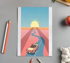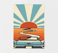 Erleben Sie die ultimative Freiheit und das ultimative Abenteuer mit unserem Vintage-Kunstwerk. Spüren Sie die Sonne auf Ihrer Haut, während Sie in einem klassischen Cabrio die malerische Küste entlangfahren. Stellen Sie sich den Wind in Ihren Haaren vor, während ein unbeschwerter Skater am Meer entlang gleitet. Dieses Meisterwerk fängt die Nostalgie eines Retro-Roadtrips ein und bringt Ihnen die Schönheit eines unbegrenzten Lebens näher. Perfekt für jeden Kunst- und Abenteuerliebhaber."