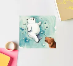 This artwork depicts a grumpy-looking cloud with a thought bubble containing a bird and a bear. The humorous and imaginative scene is set against a soft blue background.
