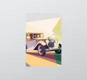 Holen Sie sich eine Illustration eines Oldtimers mit einem Retro-Stil und weichen Farben.