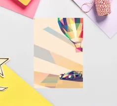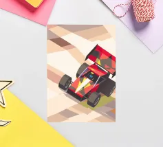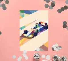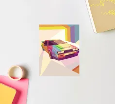 Holen Sie sich eine Illustration eines bunten Oldtimers mit einem modernen geometrischen Stil.