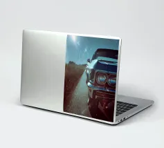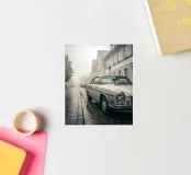 Ein detailliertes Porträt eines vom Regen durchnässten Oldtimers, das ein Gefühl von Nostalgie und Eleganz vermittelt. Hochwertige Fotografie, perfekt für Autoliebhaber, Kunstliebhaber und Grafikdesigner. Die scharfen Texturen, Farben und Details sind ein echter Blickfang.