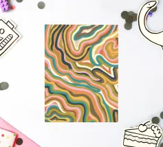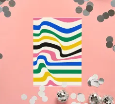 Ein fröhliches und ausdrucksstarkes abstraktes Wellenmuster mit fließenden, gewellten Linien in einer vom Retro-Regenbogen inspirierten Farbpalette - von sanftem Orange und warmem Pink bis hin zu kräftigem Türkis, Aqua, Gelb und Rot - alles sanft überlagert auf einem warmen elfenbeinfarbenen Hintergrund. Dieses minimalistische, aber wirkungsvolle Design zelebriert die Schönheit der Unterschiede und die Harmonie, die in der Vielfalt liegt. Ein auffallendes und erhebendes Stück, das Stolz, Gleichheit und Selbstdarstellung ehrt - perfekt für Wandkunst, Wohndekoration und alltägliche Accessoires, die Individualität und einen farbenfrohen Rhythmus fördern.
