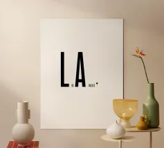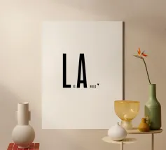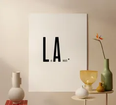 Ich liebe es, nach Los Angeles in den Vereinigten Staaten von Amerika zu reisen. Ich liebe es, um die Welt zu reisen. Ich liebe es, Städte, Berge und die Wüste zu besuchen. Typografie in Schwarz und (transparentem) Weiß. Sie können die Hintergrundfarbe ändern. Minimalistische Typografie Poster von einem Reisenden.