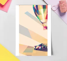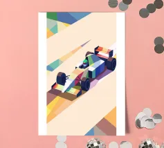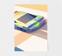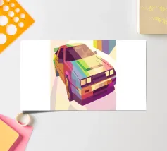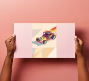 Holen Sie sich eine Illustration eines bunten Oldtimers mit einem modernen geometrischen Stil.