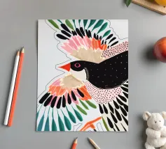 "Patchwork Perfection" fängt die lebendige Schönheit von Vögeln ein, von denen jeder mit einem Mosaik aus bunten Mustern geschmückt ist. Dieser Kunstdruck zelebriert die Harmonie der natürlichen Farbpalette durch komplizierte gefiederte Details.
