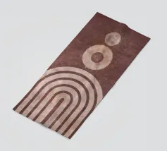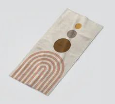 Bringen Sie Wärme und Ausgeglichenheit in Ihren Raum mit diesem abstrakten geometrischen Kunstwerk, das ein Sonnen- und Bogenmotiv in erdigen Terrakottatönen zeigt. Die minimalistische Retro-Ästhetik verleiht jedem Interieur einen zeitlosen, beruhigenden Touch. Perfekt für moderne, böhmische oder skandinavisch inspirierte Einrichtungen.