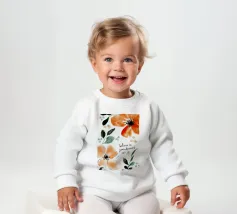 Unsere Baby Sweatshirts bestehen aus 85 % Bio-Baumwolle und 15 % recyceltem Polyester.