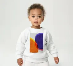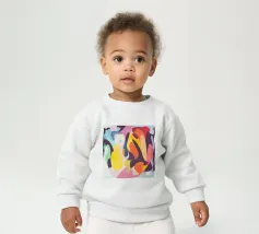 Unsere Baby Sweatshirts bestehen aus 85 % Bio-Baumwolle und 15 % recyceltem Polyester.