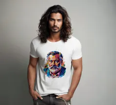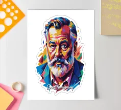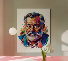 Feiern Sie das literarische Genie von Ernest Hemingway mit diesem auffälligen WPAP Pop Art Design. Mit kühnen geometrischen Formen und einer lebendigen Farbpalette interpretiert dieses Kunstwerk den ikonischen Autor in einem modernen, abstrakten Stil neu. Die WPAP-Technik (Wedha's Pop Art Portrait) erweckt das Bild Hemingways zum Leben und fängt seinen abenteuerlichen Geist und seinen tiefgreifenden Einfluss auf die Literatur ein. Dieses Design ist perfekt für Literatur- und Kunstliebhaber sowie für Fans klassischer Erzählungen und stellt eine einzigartige Hommage an einen der berühmtesten Schriftsteller des 20.
