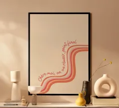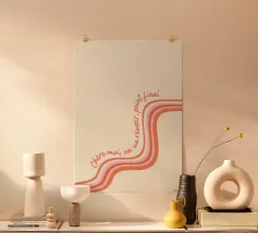 Ein Strauß voller Frische und guter Laune. Mit seinen lebendigen Tulpen und der sanften Botschaft fängt dieses Bild die Essenz des Frühlings ein. Es ist ideal, um einem Wohnzimmer, einer Küche oder einem Arbeitsbereich einen floralen und farbenfrohen Touch zu verleihen, und passt sowohl zu einer skandinavischen als auch zu einer eher retrobetonten Einrichtung. Ein leichter Vibe, ein frischer Wind, den Sie das ganze Jahr über aufhängen können.