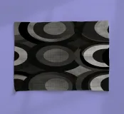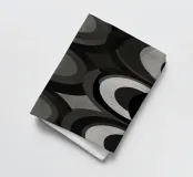 Eine lebhafte Reihe von sich überlappenden Kreisen in verschiedenen Grau-, Schwarz- und Weißtönen schafft ein ansprechendes visuelles Muster. Das Design zeichnet sich durch kontrastierende Farbtöne aus, die für Tiefe sorgen.