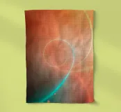 Wirbelnde Kurven in weichen Farbverläufen von Orange und Petrol schaffen ein abstraktes Design. Dieser Hintergrund hat einen beruhigenden Spiraleffekt, bei dem die Farben nahtlos ineinander übergehen.