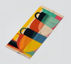 This poster combines bold typography with colorful, minimalist coffee cups. Perfect for coffee lovers and contemporary decor enthusiasts.