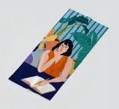 An illustration of a woman intently reading a book at her desk, surrounded by houseplants and illuminated by a lamp, conveying a sense of quiet focus.