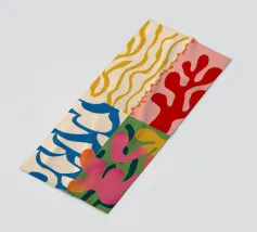 Eine moderne und verspielte abstrakte Komposition mit einer gitterartigen Anordnung von bunten, organischen Formen. Das Kunstwerk wirkt wie ein raffiniertes und ausgewogenes Puzzle aus Form und Farbe.
