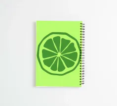 Eine stilisierte grüne Limettenscheibe mit kräftigen, klaren Linien hebt sich von einem helleren grünen Hintergrund ab. Das einfache Design hebt die Segmente und die Schale der Limette hervor.