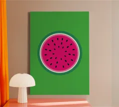 Dieses hochwertige Canvas Wandbild zeigt ein stilisiertes Wassermelonen-Motiv in knalligen Farben. Ideal als fröhliche Wanddekoration für Küche, Wohnzimmer oder Kinderzimmer. Gedruckt auf langlebiger, lichtbeständiger Leinwand mit sorgfältiger Farbbrillanz, produziert in Europa nach hohen Qualitätsstandards.