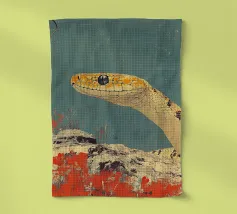 Die leuchtend gelbe Python hat filigrane Schuppen und einen neugierigen Gesichtsausdruck, der ihre Eleganz in einer schwach beleuchteten Umgebung hervorhebt, die ihre lebhaften Farben noch verstärkt.