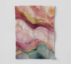 Ein Bild von einem abstrakten, dynamischen Muster in den Farben rosa, lila und gelb.
