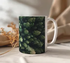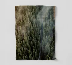Tauchen Sie ein in die beruhigende Schönheit der Natur mit diesem eindrucksvollen Luftbild eines dichten Waldes. Das Motiv zeigt das satte Grün der Baumkronen aus der Vogelperspektive und bringt die Ruhe und Harmonie der Natur direkt in Ihr Zuhause. Perfekt als Wandbild, Tasse, Handyhülle oder Kissen – dieses Design ist ein echter Blickfang und vermittelt ein Gefühl von Gelassenheit und Weite. Ein Muss für alle Naturliebhaber und Fans moderner, minimalistischer Kunst