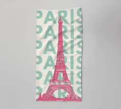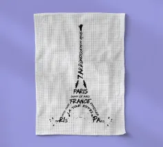 Das bekannte Wahrzeichen von Paris, der Eiffelturm, in einem sehr modernen Design. Kunstvolles Werk mit typografischen Elementen.