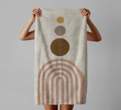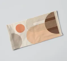 Diese abstrakte Bauhaus-Inspiration verbindet Geometrie und Symmetrie in einem modernen Design. Mit weißen Kreisen, Halbkreisen und Streifen in Grau, Orange und Pink schafft die Illustration ein harmonisches Farbspiel. Die retro Streifen-architektonischen Formen verleihen dem Kunstwerk eine minimalistische und strukturierte Ästhetik.