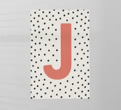 Das verspielte Design mit dem Buchstaben „J“ in kräftigem Rot auf schwarzem Punktmuster ist ein stilvoller Hingucker. Perfekt für Kinderzimmer, moderne Wohnräume oder als Geschenkidee mit persönlicher Note. Die klare Typografie kombiniert mit skandinavisch inspiriertem Muster verleiht jedem Raum einen charmanten Akzent. Ideal zum Kombinieren mit weiteren Buchstaben der Serie.