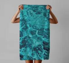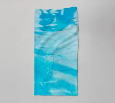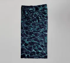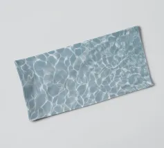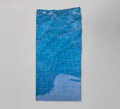 Sanfte Wellen bewegen sich über die Oberfläche eines Pools und verwandeln Licht und Geometrie in einen ruhigen, meditativen Rhythmus. Die Blautöne verändern sich subtil mit jeder Welle und schaffen ein beruhigendes Muster aus Reflexionen und Bewegung.