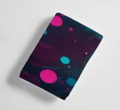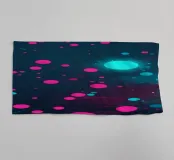 Bunte Kreise in Blau- und Rosatönen verteilen sich auf einem dunklen Hintergrund und schaffen ein lebendiges abstraktes Design, das sich perfekt für die Ästhetik des Desktops und künstlerische Ausdrucksformen eignet.