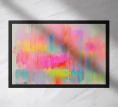 This abstract artwork depicts flowing areas of colour in pastel pink, yellow, blue, green and pink. The soft brushstrokes and harmonious pop art colour composition create a vibrant, lively atmosphere. The motif appears modern, light and emotional, inviting free interpretation.