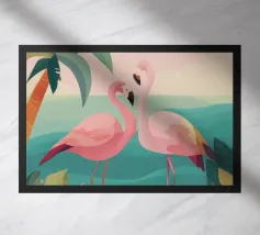 Flamingo Kunstdruck - Geometrische tropische Dekoration Bringen Sie lebendige Energie und moderne Eleganz in Ihr Zuhause mit diesem Flamingo-Wandbild. Es zeigt zwei wunderschöne handgemalte Flamingos, die durch ein auffälliges geometrisches Rautenmuster neu interpretiert werden. Das Original-Kunstwerk wurde in liebevoller Handarbeit erstellt und in einen hochwertigen Druck umgewandelt, so dass Sie die Details und die Kunstfertigkeit in Ihrem eigenen Raum genießen können. Dieses tropisch inspirierte Kunstwerk eignet sich perfekt für Wohn- und Schlafzimmer, Büros oder kreative Räume. Es kombiniert den verspielten Charme von Flamingos mit einer modernen abstrakten Note.