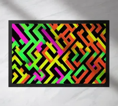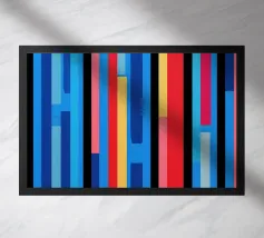 Dieses digitale, farbenfrohe Kunstwerk mit parallelen Linien ist ein visuell auffälliges Werk, das die Verwendung von präzisen Linien zeigt. Die Künstlerin (kathrinmay) verwendet verschiedene Längen von Linien, um ein Gefühl von Dimensionalität zu schaffen, während die Verwendung von Farben ein Gleichgewicht schafft.