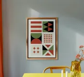 Bauhaus Geometric Pattern Grid | Red & Green Mid-Century Pri aluminio dibond