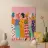 Una pintura figurativa abstracta, vibrante y maximalista que muestra una variada línea de mujeres, cada una de las cuales irradia confianza y estilo individual. La ecléctica mezcla de estampados es el corazón de la obra, que contrasta los clásicos lunares y los atrevidos cuadros con manchas fluidas, como pinceladas, en una rica paleta de amarillo, azul oscuro, verde y naranja. Varias figuras se combinan con vaqueros/pantalones modernos de pierna ancha o de corte recto en colores contemporáneos, que sirven de base a los tops y faldas largas Pop Art. La enérgica textura pintada a mano y los vivos colores son característicos de esta serie. Este archivo digital premium (7000x5000