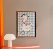 Simpática ilustración de un pato con botas y lazo aluminio dibond