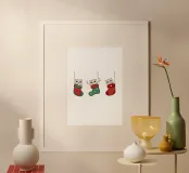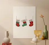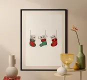 Colgando lindos gatitos con calcetines de navidad hahnemühle